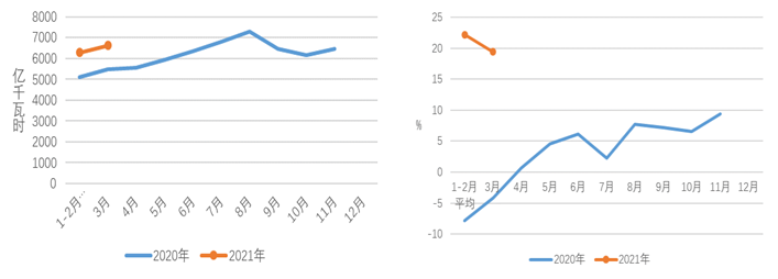 1-3月,全國(guó)全社會(huì)用電量19219億千瓦時(shí),同比增長(zhǎng)21.2%,其中,3月份全國(guó)全社會(huì)用電量6631億千瓦時(shí),同比增長(zhǎng)19.4%。