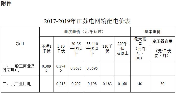 按照國(guó)家發(fā)展改革委輸配電價(jià)改革統(tǒng)一部署,現(xiàn)將江蘇電網(wǎng)2017-2019年輸配電價(jià)及有關(guān)事項(xiàng)通知如下: