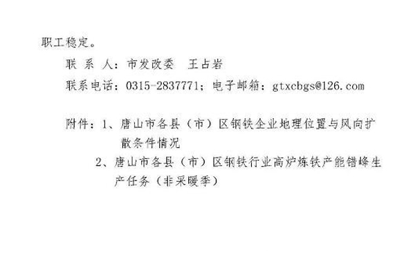 新聞中心日前,《唐山市鋼鐵行業(yè)2018年非采暖季錯峰生產(chǎn)方案》經(jīng)市政府同意,已正式下發(fā)。方案中明確了錯峰生產(chǎn)依據(jù)和原則,綜合考慮唐山市環(huán)境空氣質(zhì)量現(xiàn)狀、鋼鐵企業(yè)所處區(qū)域和氣象條件,對全市鋼鐵企業(yè)實施非采暖季精準化、差異化錯峰生產(chǎn)。全文如下: