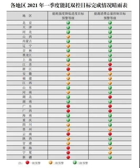 為貫徹落實黨中央、國務(wù)院關(guān)于強(qiáng)化能源消費總量和強(qiáng)度雙控的決策部署,加強(qiáng)能耗雙控形勢分析預(yù)警,國家發(fā)展改革研究提出了《各地區(qū)2021年一季度能耗雙控目標(biāo)完成情況晴雨表》。