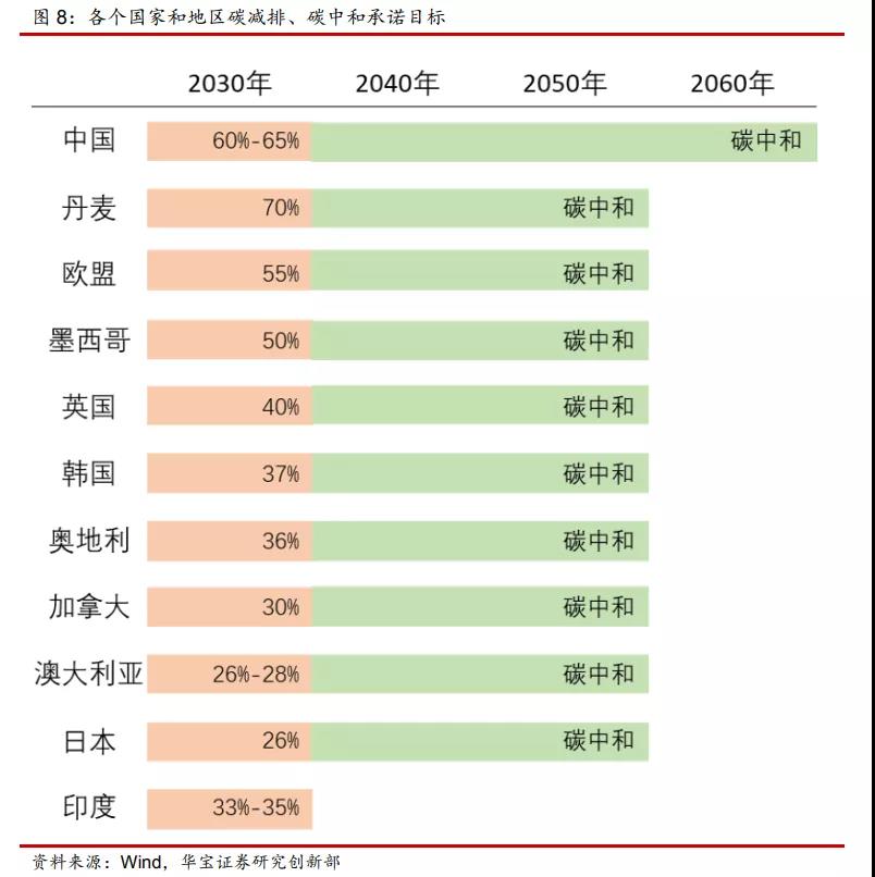 各個(gè)國(guó)家和地區(qū)碳減排、碳中和承諾目標(biāo):
