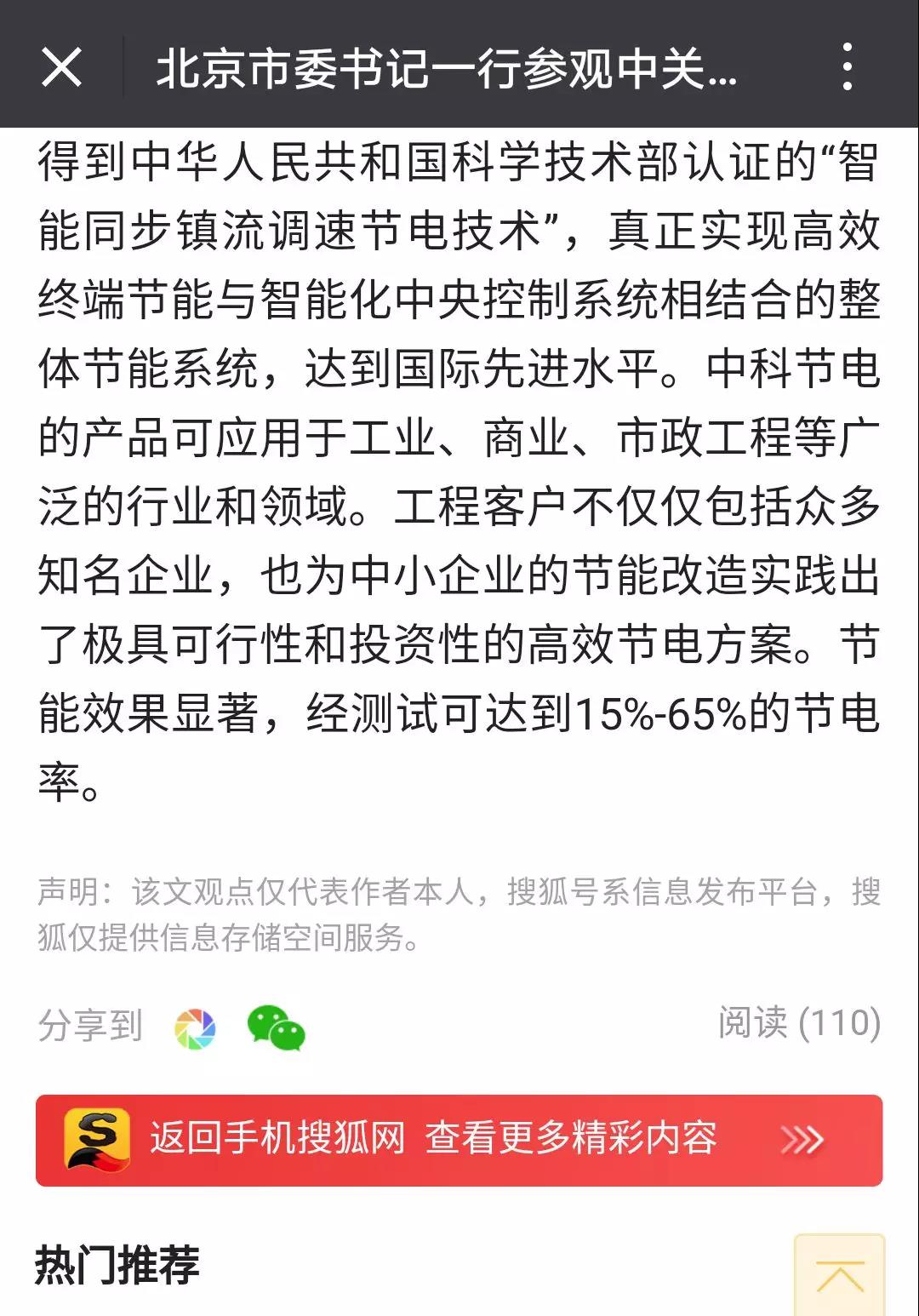 厲害了!中科節(jié)電技術(shù)在科博會(huì)上備受北京領(lǐng)導(dǎo)關(guān)注,引搜狐新聞報(bào)道!