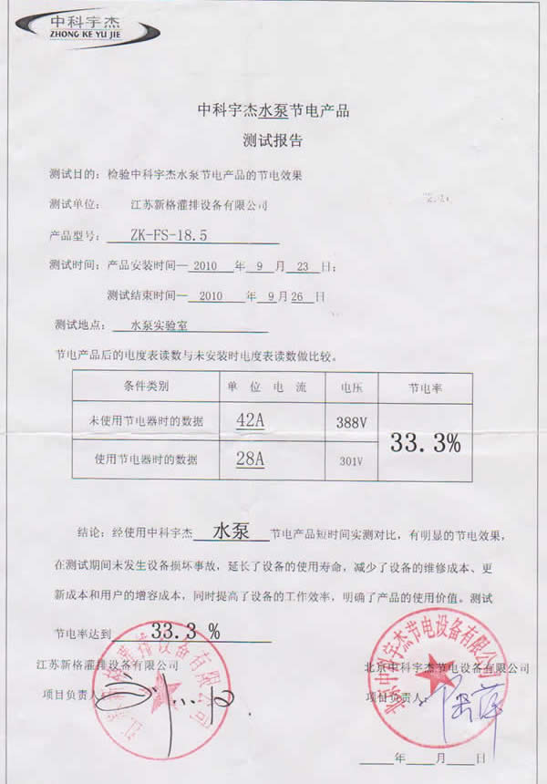經過嚴格的測試和同期的用電對比,節(jié)能效率達到33.3%,節(jié)能效率超出了技術論證的結果。中科宇杰的技術實力得到權威專家的認同。