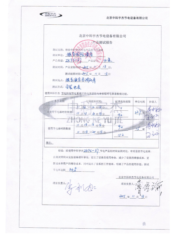 安裝調(diào)試并驗(yàn)收后,通過(guò)現(xiàn)場(chǎng)讀表,顯示節(jié)電達(dá)到34%,節(jié)電效果明顯。按質(zhì)保十年計(jì)算,此項(xiàng)節(jié)能工程能為榆林市銀杏國(guó)際酒店帶來(lái)四百萬(wàn)以上人民幣的直接經(jīng)濟(jì)效益。