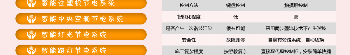 有些企業(yè)可能有疑惑,這么好的節(jié)電效果,是不是電耗降低了,我們的生產(chǎn)或者設(shè)備就會(huì)受到影響 ?中科宇杰在全國(guó)成功實(shí)施500多項(xiàng)案例,已經(jīng)非常了解各個(gè)行業(yè),針對(duì)不同終端機(jī)電設(shè)備的使用需求,在100%保證用電企業(yè)原有設(shè)備的正常使用和操作要求下,達(dá)到承諾的節(jié)電效果。