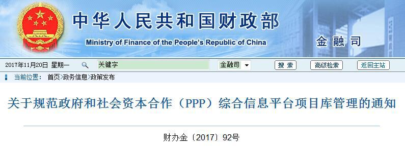 投資額達(dá)17.8萬(wàn)億元的PPP項(xiàng)目庫(kù)管理進(jìn)一步從嚴(yán)規(guī)范。11月16日,財(cái)政 部公布《關(guān)于規(guī)范政府和社會(huì)資本合作(PPP)綜合信息平臺(tái)項(xiàng)目庫(kù)管理的通知》(以下簡(jiǎn)稱(chēng)《通知》)。